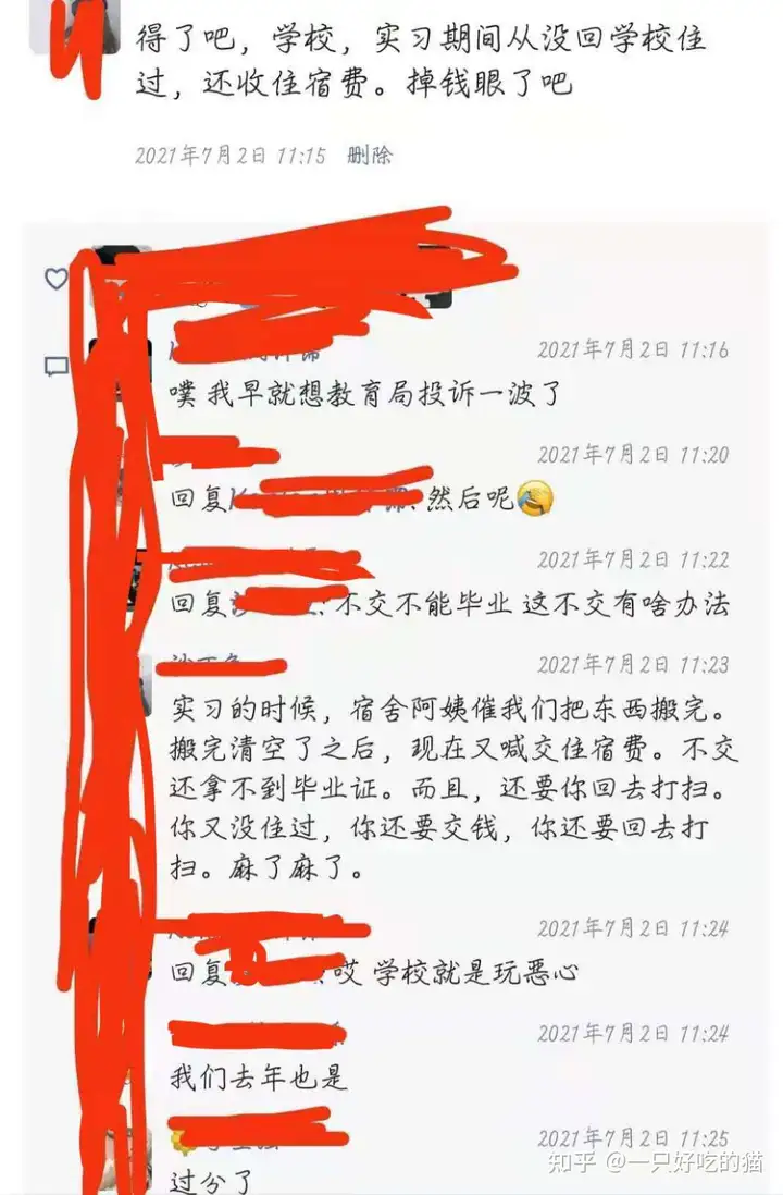 领毕业证的时候又要收你住宿费,不交住宿费拿不到毕业证 虽然你没住过,你还要回去打扫,去打扫的时间晚一点还要挨顿骂。