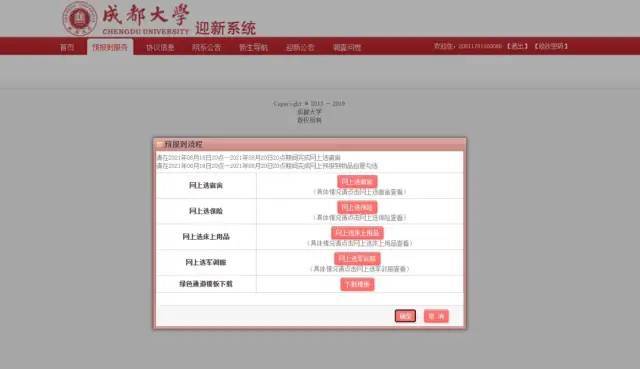 系统自动按照分性别、分层次、分专业显示可选择床位(同性别、同层次、同专业新生全部在同一区域)。凡通过“成都文理学校2021年智慧招生大数据服务平台”成功选择寝室床位、班级的新生,学校将提供迎新报到“一站式”服务:新生到学校后由志愿者带领直接领取学校已提前准备好的迎新物品,拎包入住寝室,无需现场排队。