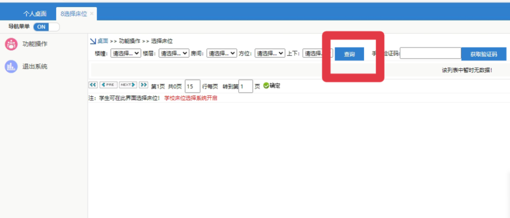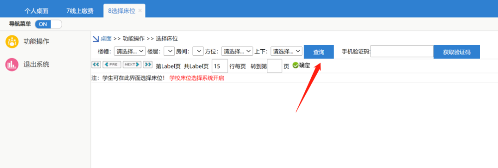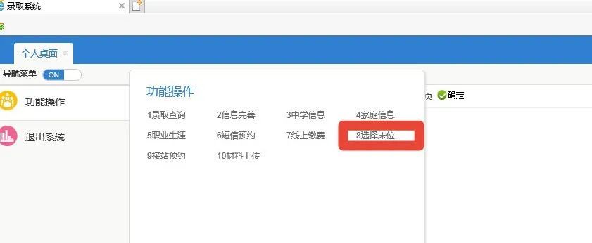 (1)完成全额缴费后进入系统点击“8选择床位”