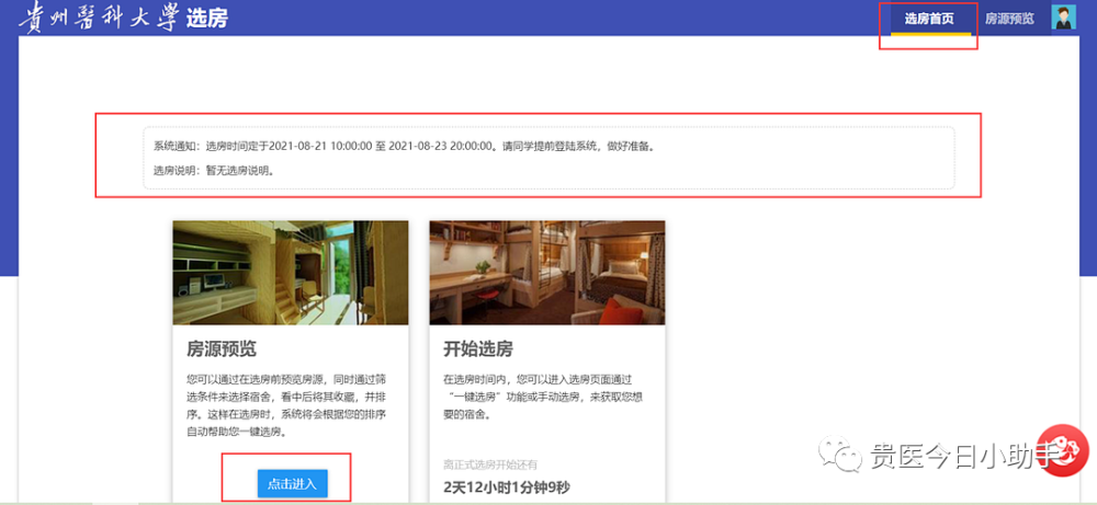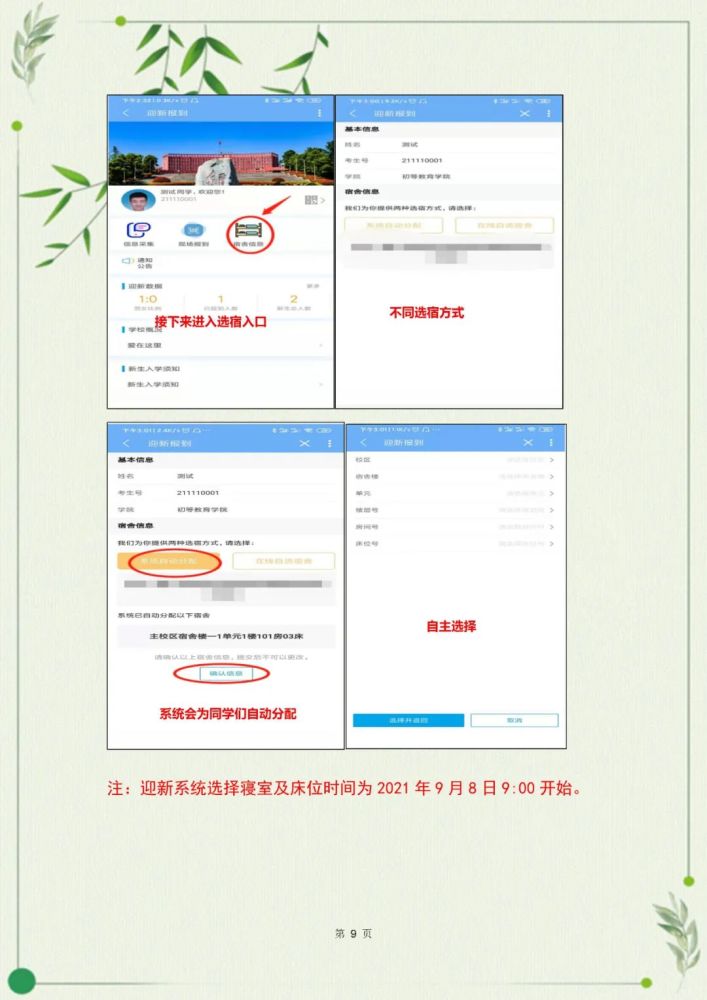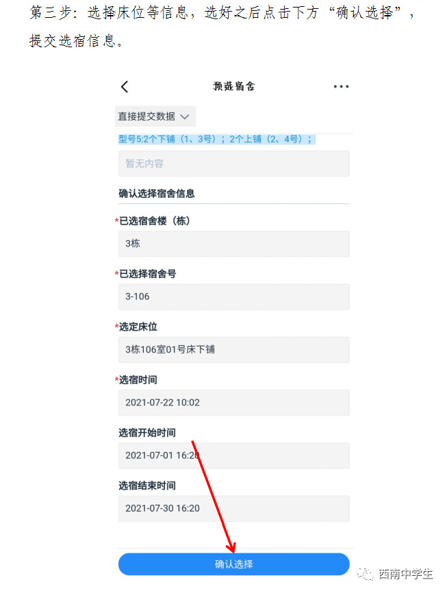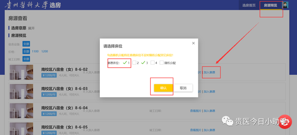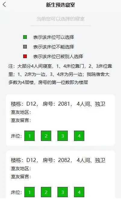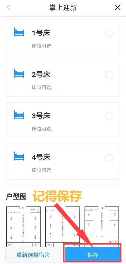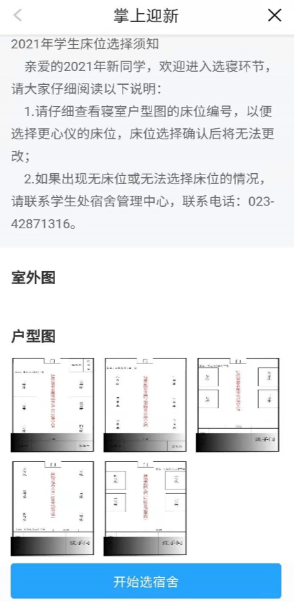 (3)参考“入学须知”中的寝室图片在可选寝室范围内进行选择