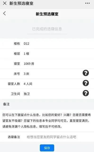 如何知晓自己是否选寝成功?点击“所在寝室”会显示宿舍详细信息: