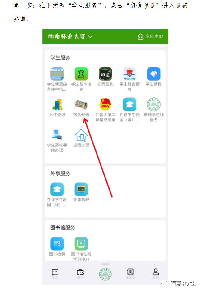 新生可在网上报到注册时预选宿舍,具体操作如下: