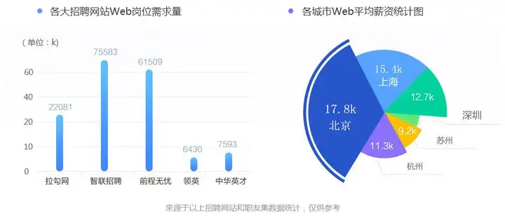 而且随着Web前端已经越来越趋向职业化、专业化,互联网行业也意识到了Web前端在企业的重要性,对于这方面的人才需求也越来越大,不管是薪资待遇还是晋升空间都不错。