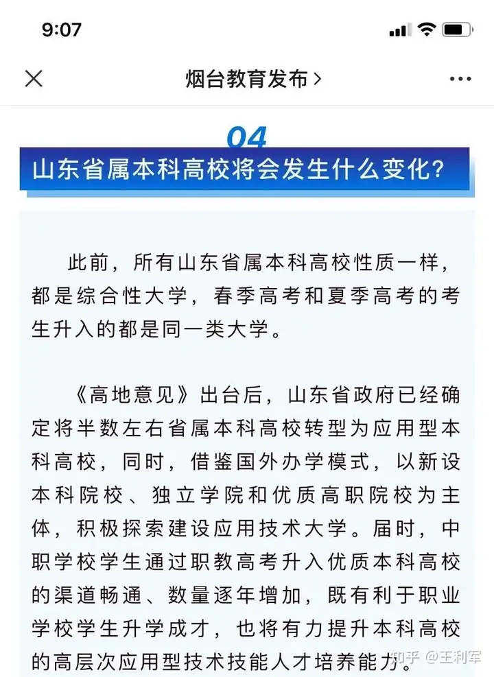 山东省教育厅把半数左右省属本科高校转型为应用型本科高校,为中职生通过职教高考升入优质本科院校创造了有利条件。
