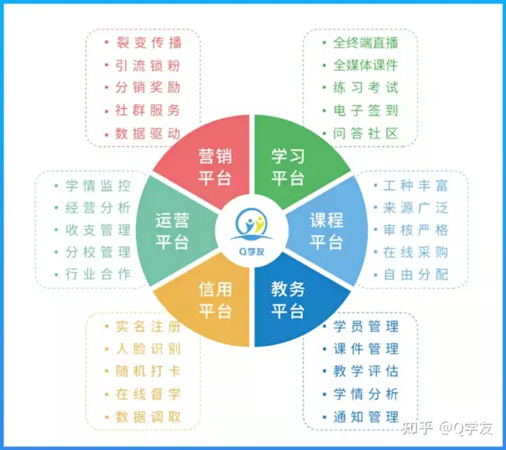 Q学友作为智慧培训领导者,一直坚持帮助学校、培训机构、企业实现从线下到线上的转型升级,为各类合作伙伴提供线上线下混合式教培流程优化服务。借助Q学友平台,通过全新的信息化管理方式与互联网服务手段,实现系统化的流程管理、科学化的数据考核、个性化的智慧服务。