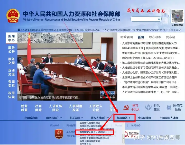 我们可以通过从中华人民共和国人力资源与社会保障部官方网站部属网站 底部的部属网站,可以看找到 中国国家人事人才培训网,点击并可以进入中国国家人事人才培训网官网!
