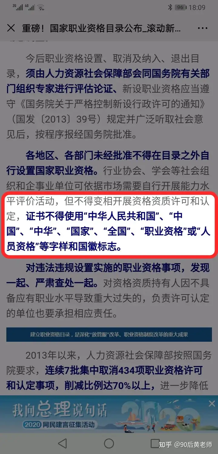 【人社部发(2017)68号】文件(人社部官网)(点击查看),明确指出,证书不得使用“中华人民共和国”“中国”“中华”“全国”“职业资格”“人员资格”等字样和国徽,如果非人社部资格证出现以上字样都可以认为是违规行为。