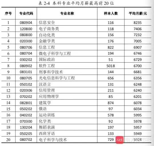 毕业本科专业薪酬方面:从国家设置的标准专业看,平均月薪最高的是信息安全,为8235元;其次是电子商务类,为7406元;第三是自动化类,为7232元。