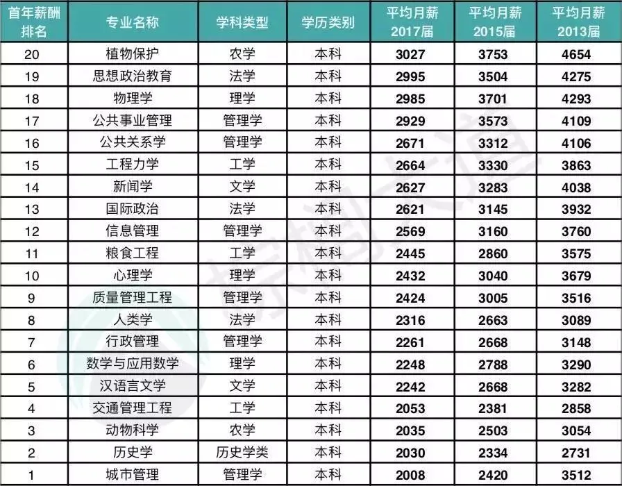 1、薪资最低的20个专业