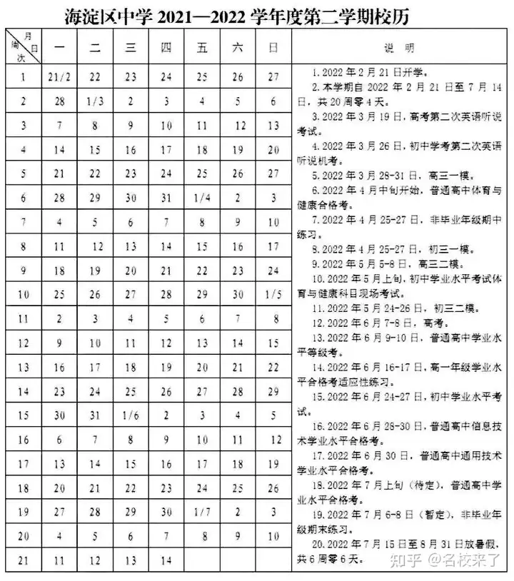 随着开学季的到来,很多学校也公布了新学期的校历。根据海淀区2021-2022学年第二学期校历可知:2022北京中考考试时间是6月24-27日。