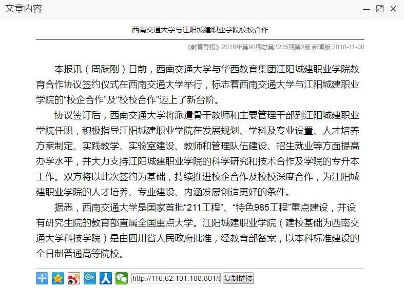 ▲ 根据合作培养协议我校学生在学校学习两年在西南交通大学学习一年