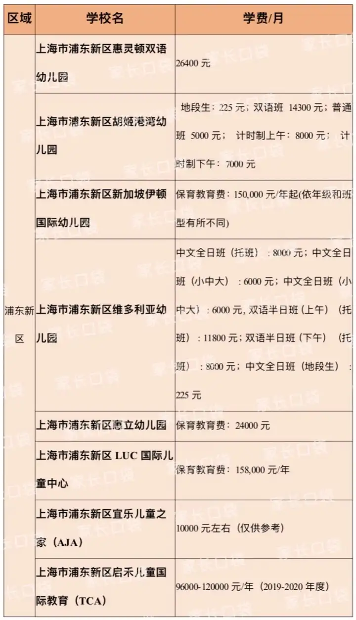 但总的来说,高端园居多的浦东新区是优质学前资源的聚集地,有了惠灵顿、惠立、嘉宝等超高端的“天价园”加持,想就读浦东新区的民办幼儿园,平均学费维持在5000-6000元/月的水平。