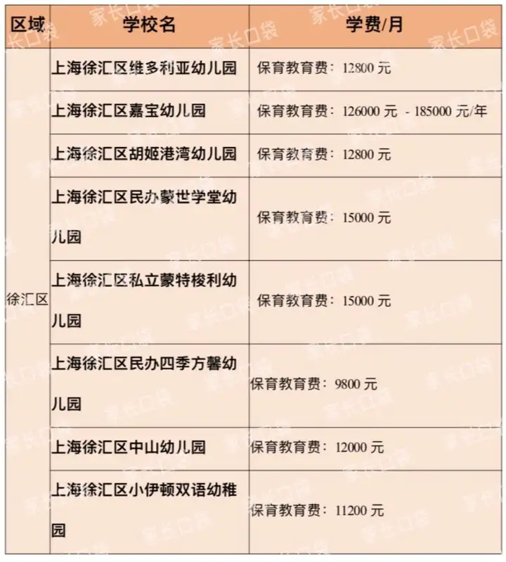 徐汇区是全市平均学费最贵的区,强劲的教育资源不管在学前阶段还是义务教育阶段都相当抢眼。作为教育强区,徐汇区聚集了大量高端园和超高端园,胡姬港湾、维多利亚、蒙氏学堂、私立蒙特梭利、嘉宝等幼儿园,每年竞争都非常激烈,是出了名的难进,这些民办园的教育质量、升学水平和学费成正比,