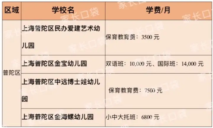 普陀区的学前教育资源处于中等水平,口袋君挑选了不同价格水平的几所民办幼儿园,金海螺、中远博士娃的学费水准是普陀区民办园的平均价格区间,6000-7000元/月就能在普陀区选到很多教学质量不错的中高端园。