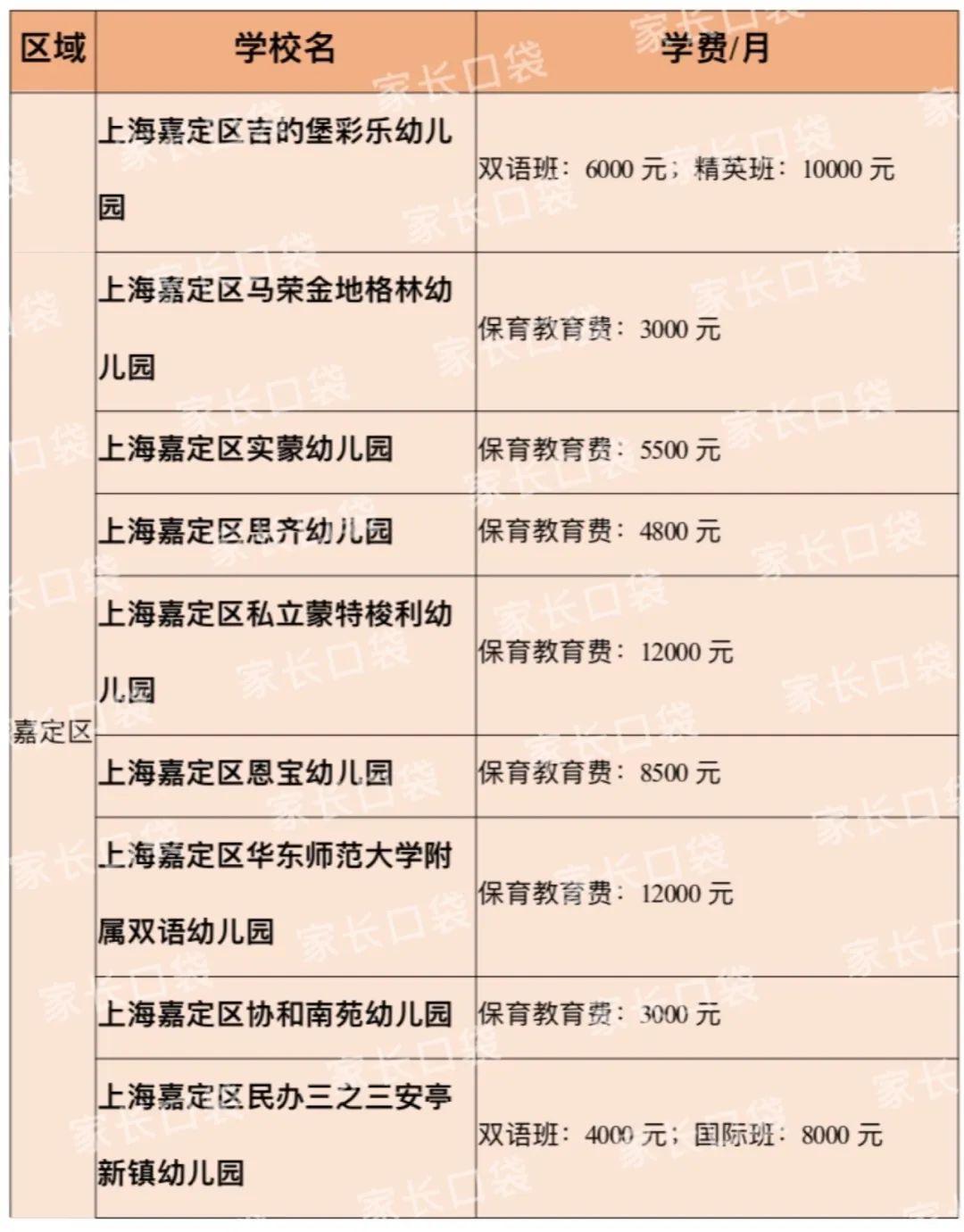 嘉定区近几年新开来不少的民办幼儿园,打鸡血的吉的堡、十六年一贯制的华师双语、排位名单很长的私立蒙特梭利、口碑很好的格林幼儿园等,嘉定区民办幼儿园的学费水平在5000-6000元/月,也是在新开办的双语高端园作用下,拉高了学费的水平线,整体价格在16个区里算是比较高。
