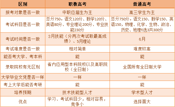 二、职教高考和普通高考的区别?