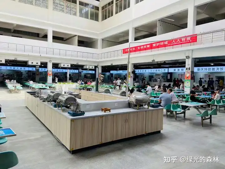 学校食堂,引进竞争机制,饭菜花色品种多,高、中、低档都有,可满足不同学生的要求,价格公道,学生生活费平均每月1000元/每人左右。