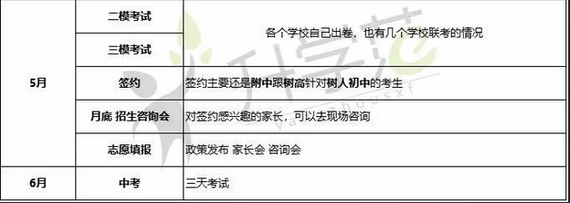 二模三模考试时间一般都在5月进行,各个学校自己出卷,也有几个学校联考的情况。难度没有那么大,但是大家不能掉以轻心,特别是想要签约附中的树人初中的同学,附中的签约也会参照二模三模的成绩,并且在之后发展部的选拔中也会进行加分。