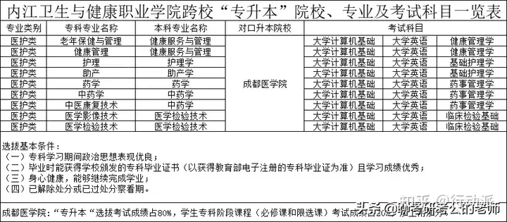 内江卫生与健康职业学校跨校“专升本”院校、专业及考试科目一览表