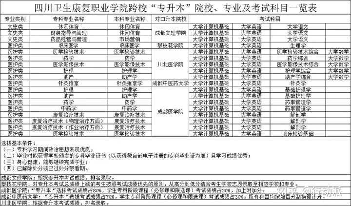 四川卫生康复职业学校跨校“专升本”院校、专业及考试科目一览表