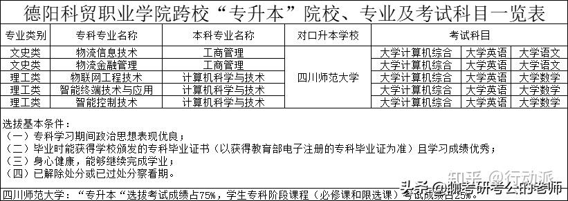 德阳科贸职业学校跨校“专升本”院校、专业及考试科目一览表