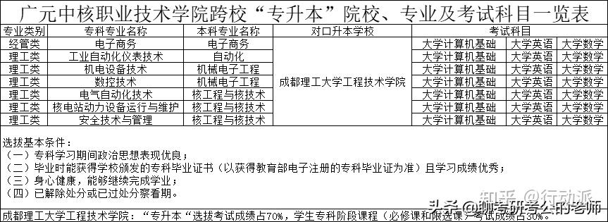 广元中核职业技术学校跨校“专升本”院校、专业及考试科目一览表