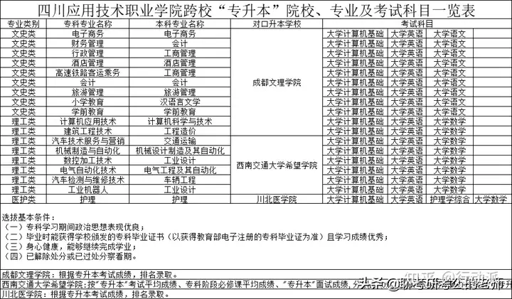 四川应用技术职业学校跨校“专升本”院校、专业及考试科目一览表