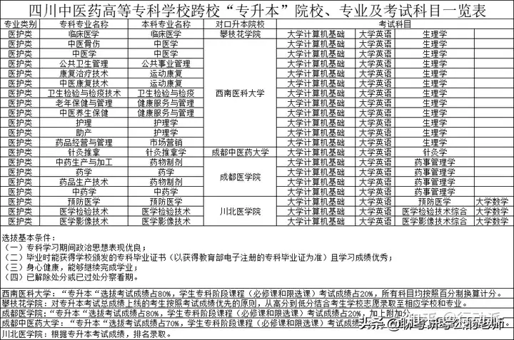 四川中医药高等专科学校跨校“专升本”院校、专业及考试科目一览表