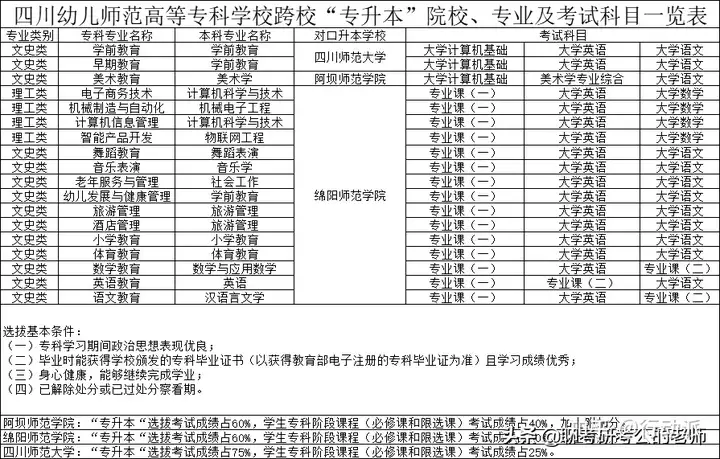 四川幼儿师范高等专科学校跨校“专升本”院校、专业及考试科目一览表