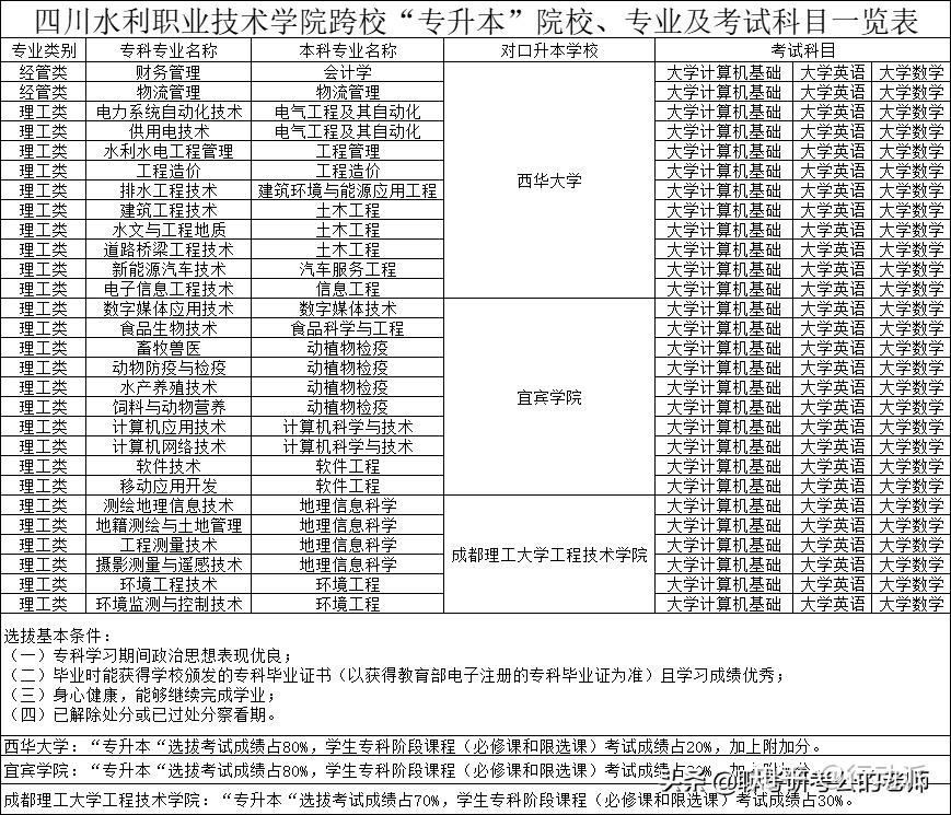 四川水利职业技术学校跨校“专升本”院校、专业及考试科目一览表