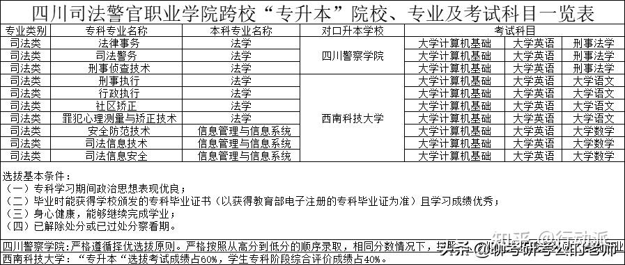 四川司法警官职业学校跨校“专升本”院校、专业及考试科目一览表