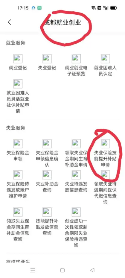 2、 进入“成都就业创业”页面选择“失业保险技能提升补贴申请”,并根据页面提示填写申报信息