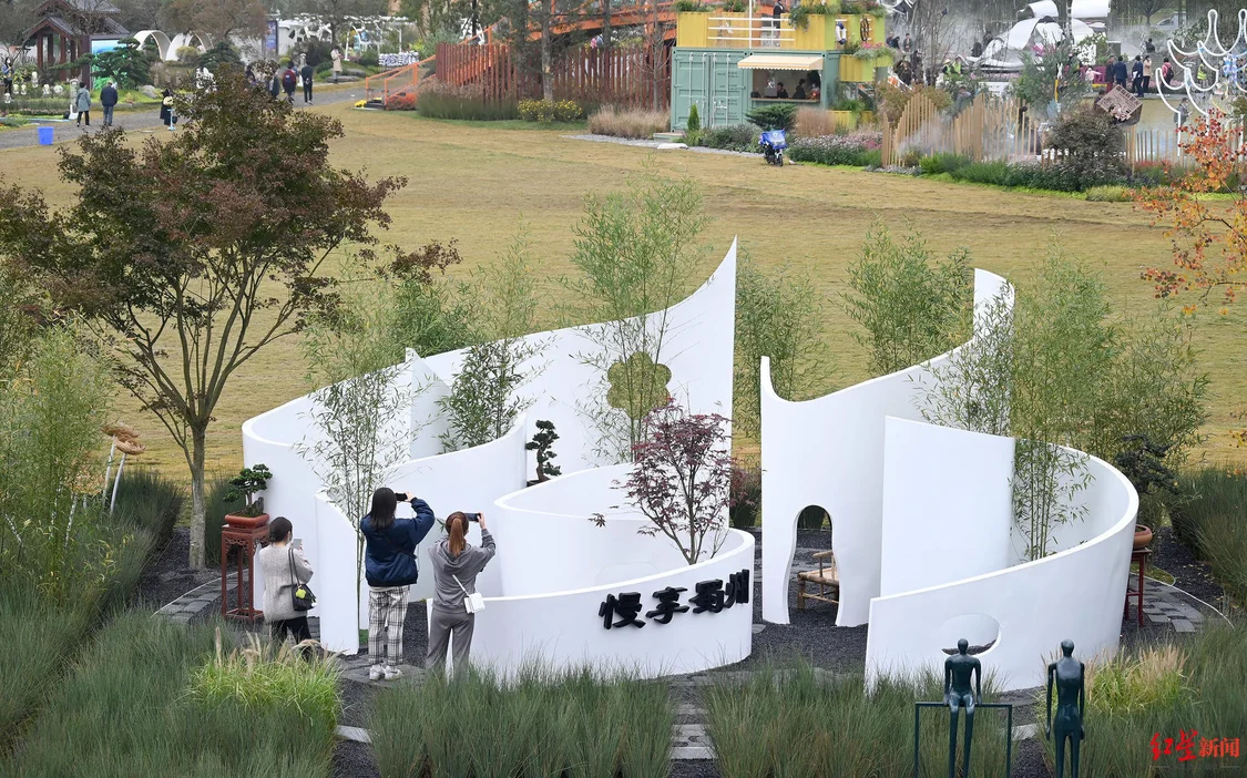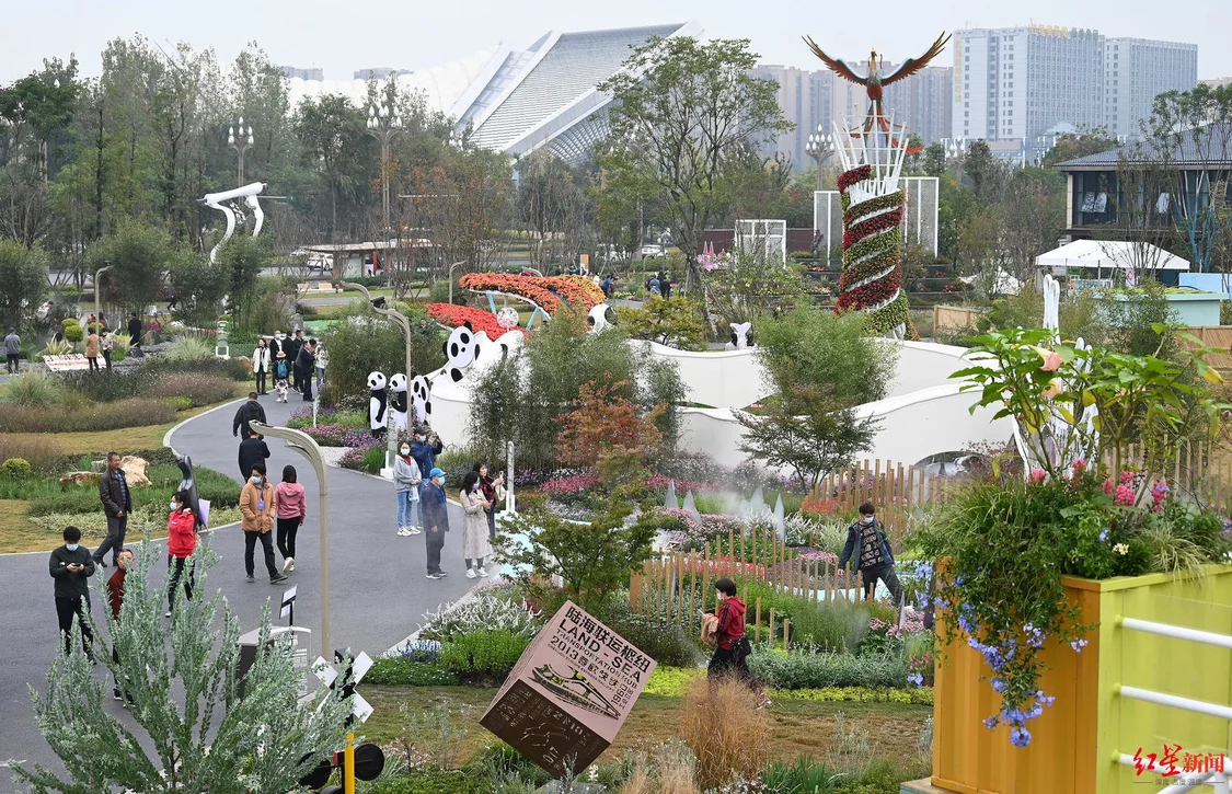 11月4日上午,一走进成都花展活动现场,记者就被各具特色的展园吸引。28个城市花境展园星罗棋布,展园内各种花卉植物、主题雕塑等各类花境让人眼花缭乱。