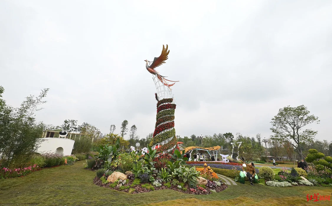 重庆市展园以“解放碑”及城市建筑等地标、“坡坎崖”绿化美化为载体,展现近年来重庆城市生态发展,城市更新新成就。“这个重庆解放碑造型的花卉作品有点意思,很有创意的表现形式。”如今定居在成都的重庆人小徐看到“老家”的建筑被缩小搬到了成都公园之中,倍感亲切。