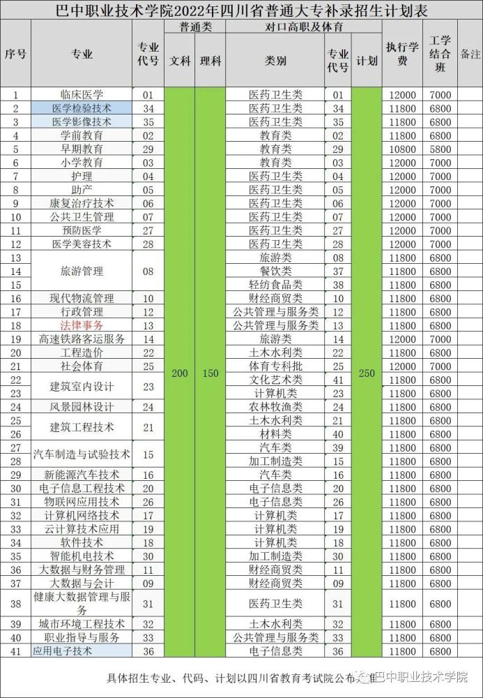 巴中职业技术学校(招生代码:5651)现有部分招生专业补录名额,面向成绩达到四川省专科录取控制分数线而未被录取的考生,现将有关事宜通知如下: