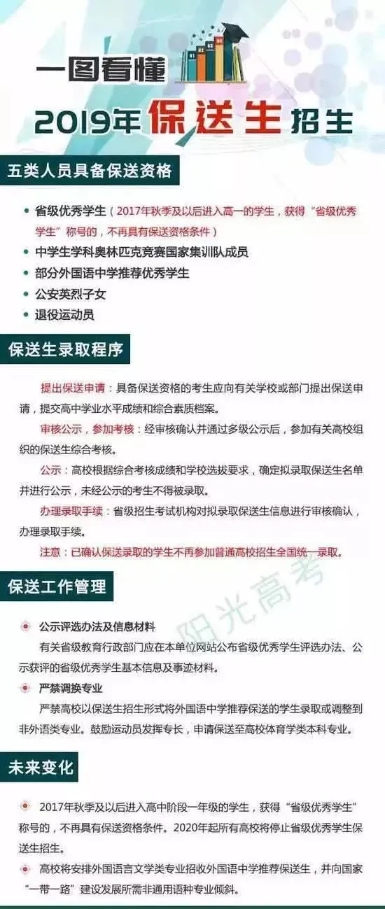 不过高考这座独木桥竞争如此激烈,有的人却不用参加却也能读大学,这就是保送生。前段时间,教育部门公布了2019年保送生的招生计划,再次声明这五类人可以成为保送生。