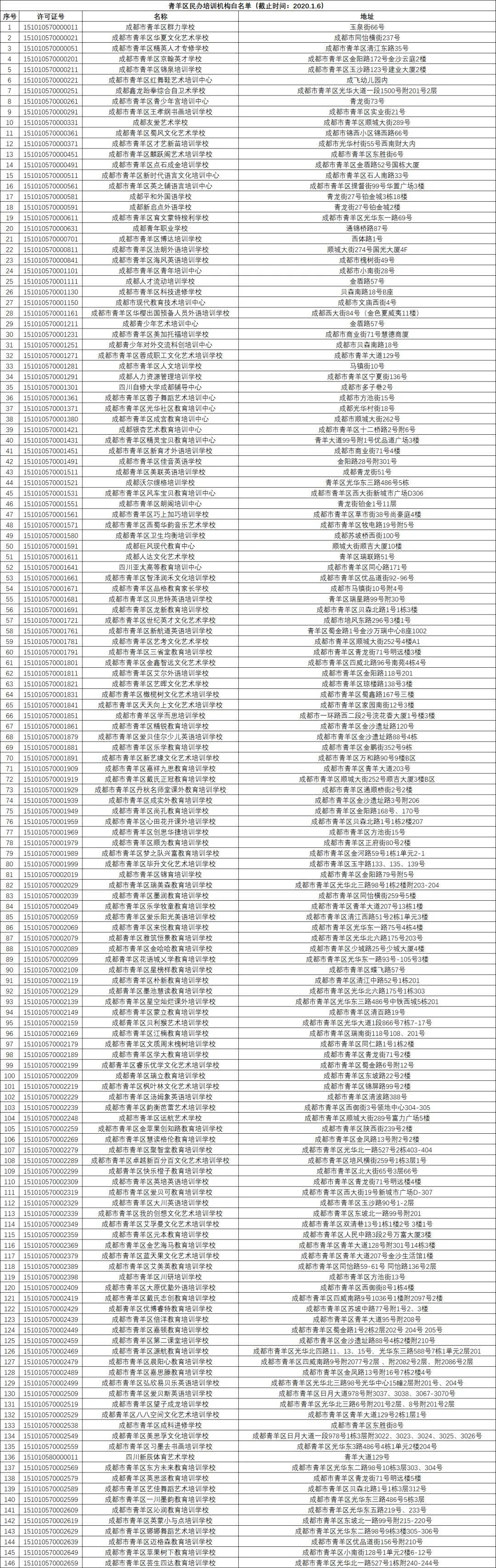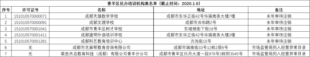 随着寒假来临,校外培训班成了不少家长讨论的话题,为了让广大家长在给孩子报班时擦亮眼睛,避免踩坑,1月7日,成都市青羊区教育局公布了最新版青羊区校外培训机构黑白名单(统计截止时间:2020年1月6日),同时还发布了《青羊区关于选择校外培训机构告家长书》,通过五个步骤教会家长辨明正规的培训机构。