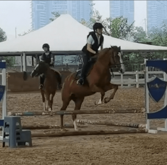 刘迤昕学习马术快两年了,第一次体验马术时,她非常紧张,坐在马背上双手紧握缰绳和鞍子却还在发抖,不知所措。在经历了无数次的拼搏和摔马,在一次次的摔马的疼痛中,终于明白了作为马术运动员在每一次摔马后爬起来继续前行恰恰是自己最好的成长机会,更是对自己抗挫能力的全面提升。随着一次次和马儿的配合、教练的每一次教导,使得她更加爱这项运动,爱它的挑战性和人马之间的配合。