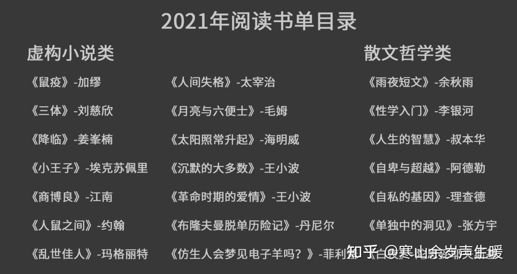 总结了一下去年读过的书,具体分析单独发了文章,感觉还不错,挺有成就感的。