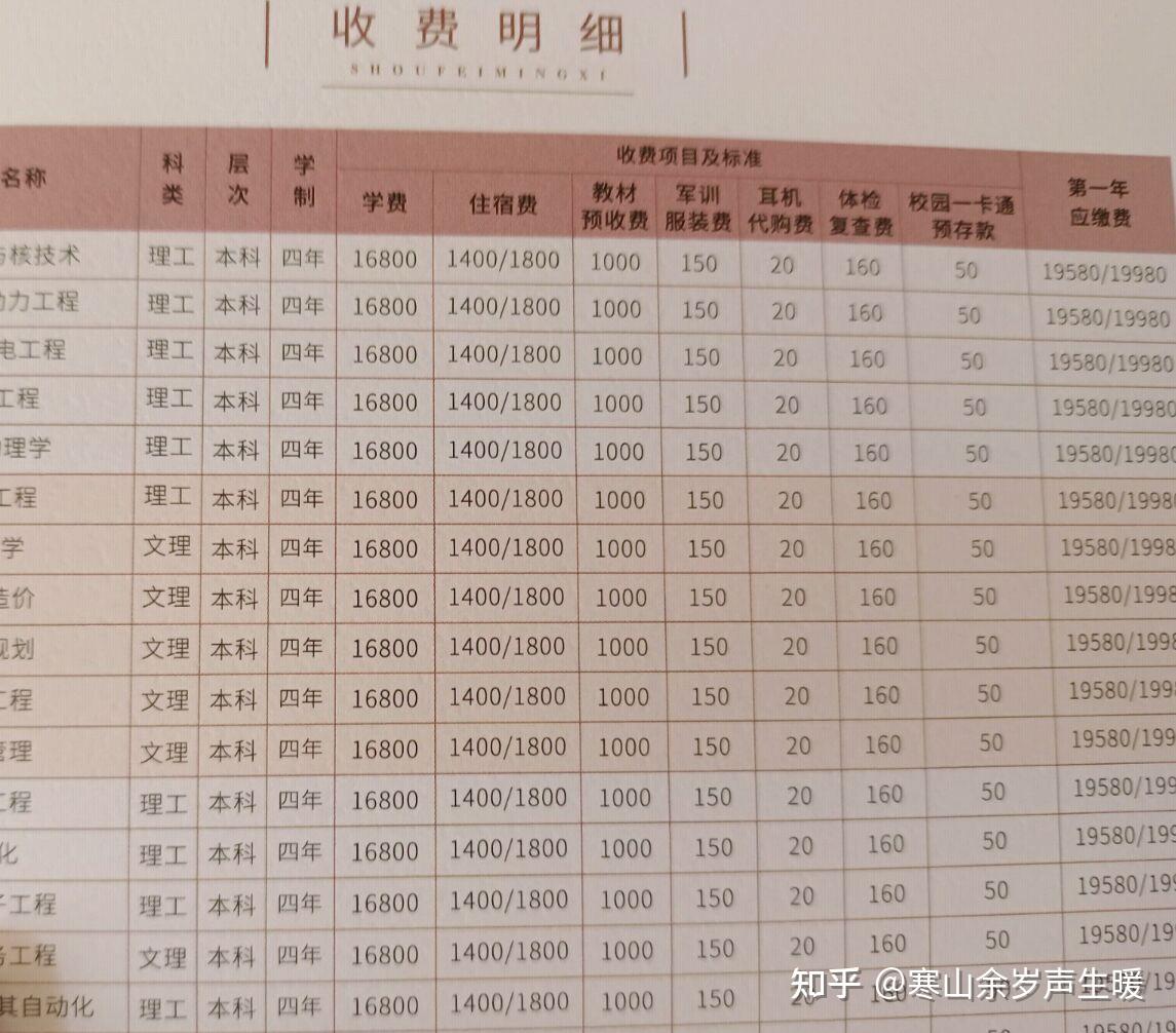 19年学费是一万四左右,同层次学校都接近两万,相比之下还好。中核集团是学校的“股东” ,每年“校招”不少优秀学子!!!19年学校准备取消给排水专业 ,但中核有需要,20年学校硬又开起来。毕业的中核全收了。