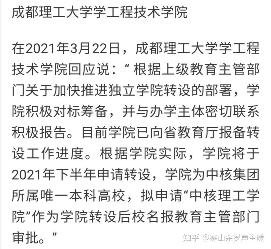 中国核工业西南物理研究院与成都理工大学于2000年创办了成都理工大学工程技术学校,是第一批独立学校。