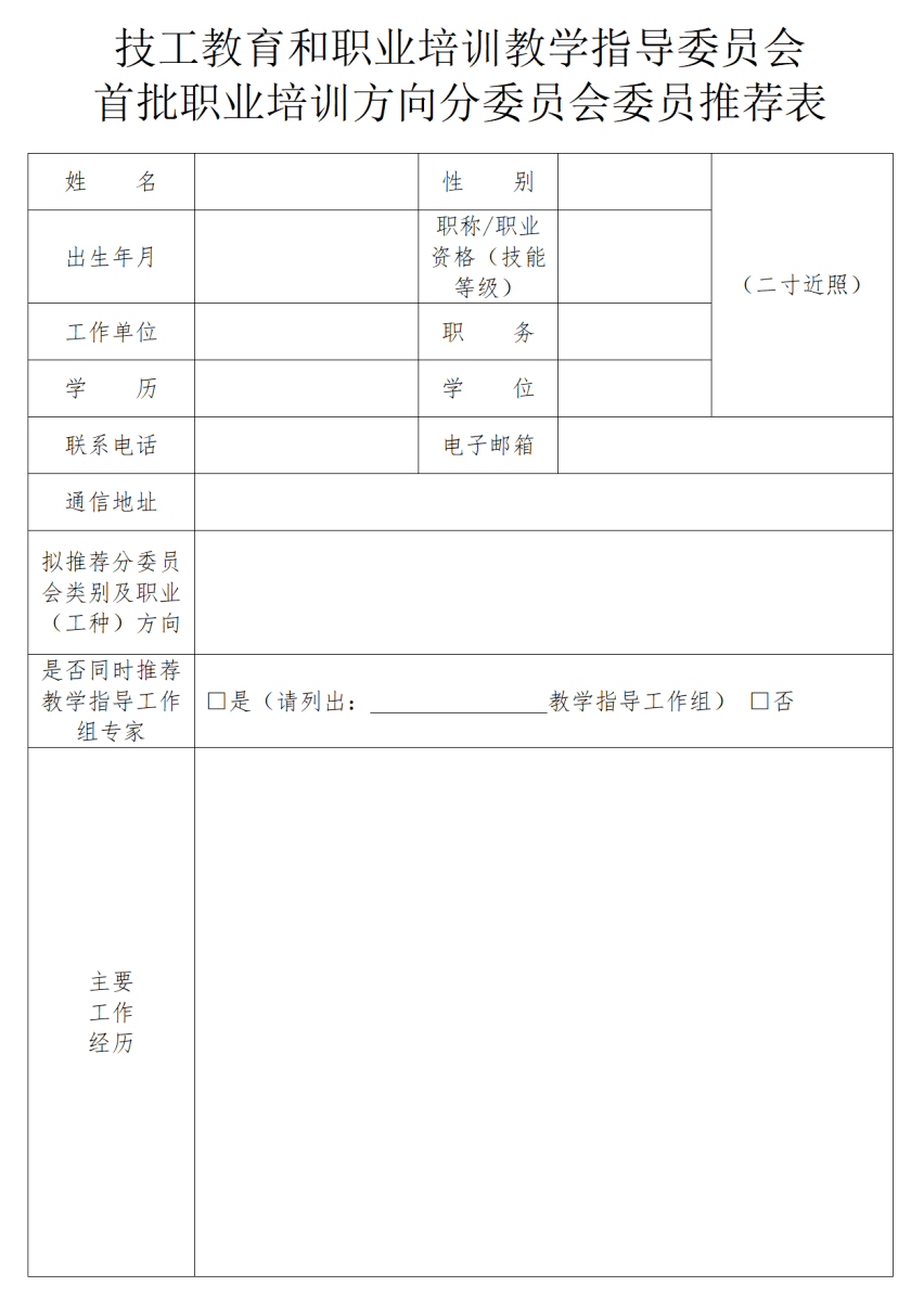 2.技工教育和职业培训教学指导委员会首批职业培训方向分委员会委员推荐表