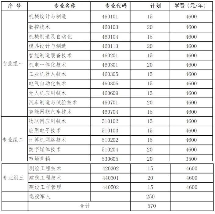 单独招生专业及计划