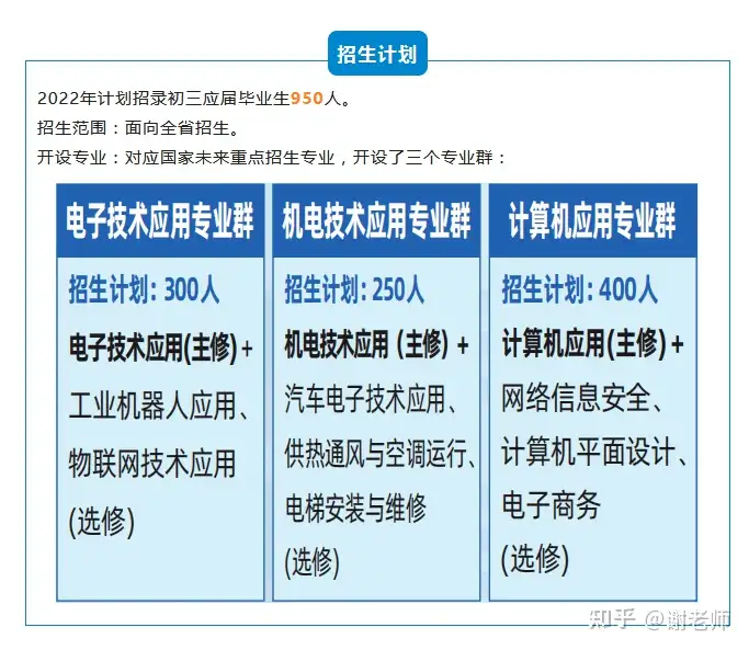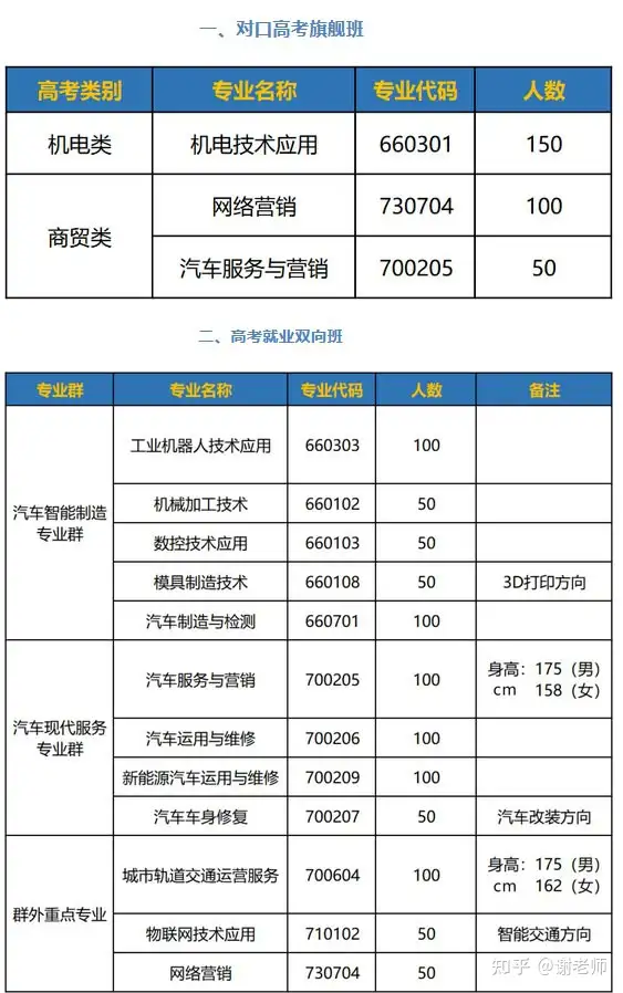 1、应届初中毕业生均可报考我校,要求品行端正,身心健康,无传染疾病,无纹身;男生身高164cm以上,女生身高155cm以上(另有部分专业的身高标准已备注在招生专业计划表)。