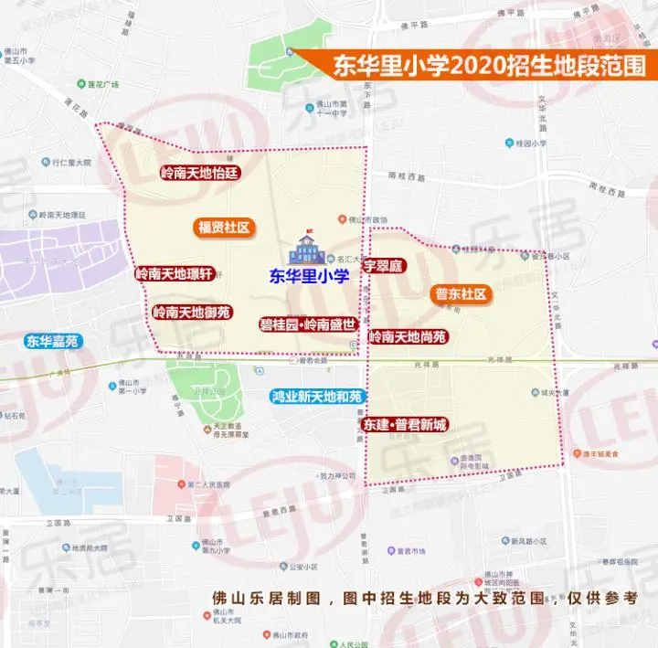 2020年东华里小学招生范围为:普东居委(可选佛山一小)、福贤居委(可选佛山二十五小),暂借佛山十一中办学一学期。