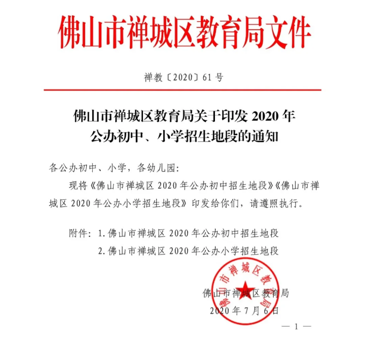 久等多时!7月6日傍晚,2020年禅城区公办小学、初中招生地段划分终于公布!