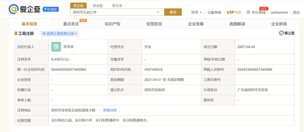 深圳石岩公学爱企查信息