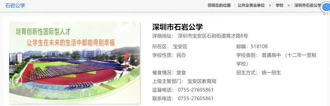 深圳政府在线目前显示深圳市石岩公学学校性质依然是民办