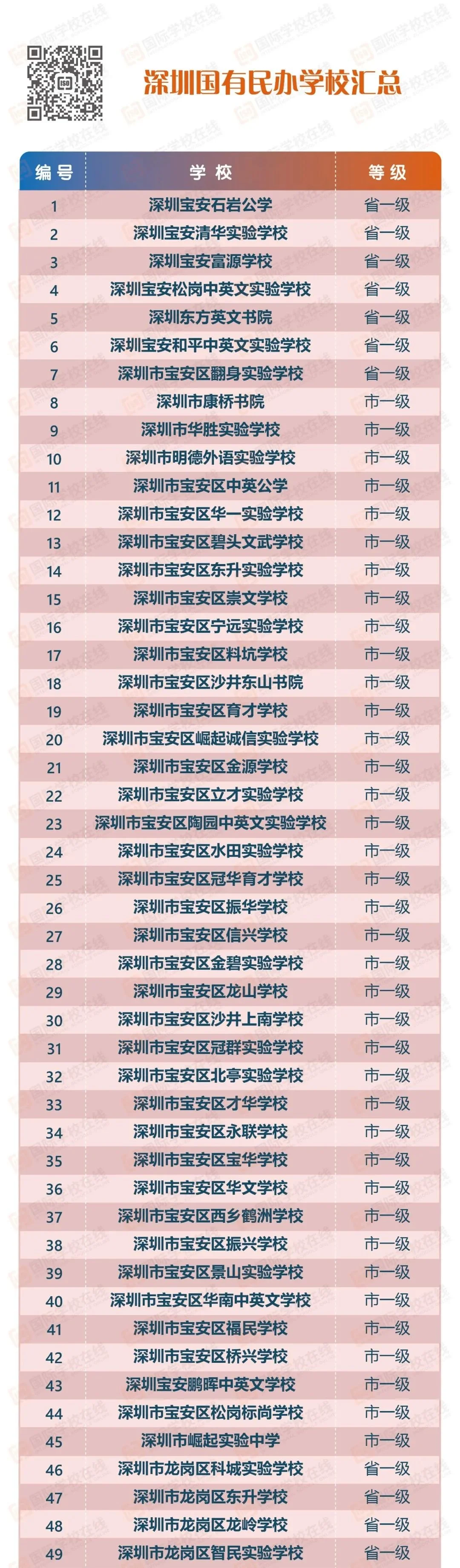 目前深圳国有民办学校共有142所,详细名单如下,如有遗漏或是不实之处,欢迎指正。