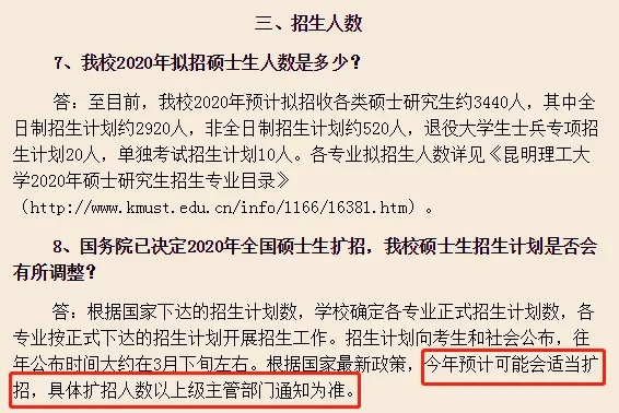 昆明理工大学:根据国家最新政策,今年预计可能会适当扩招,具体扩招人数以上级主管部门通知为准。
